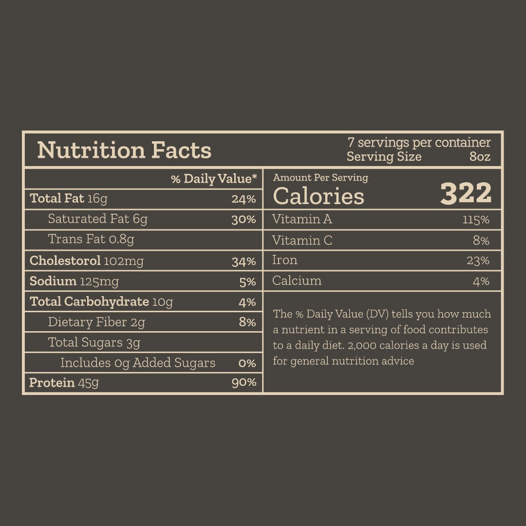 Simplify your protein intake with a little variety: two bags of fully-cooked real food, made of real ingredients, for the Dawg in you.